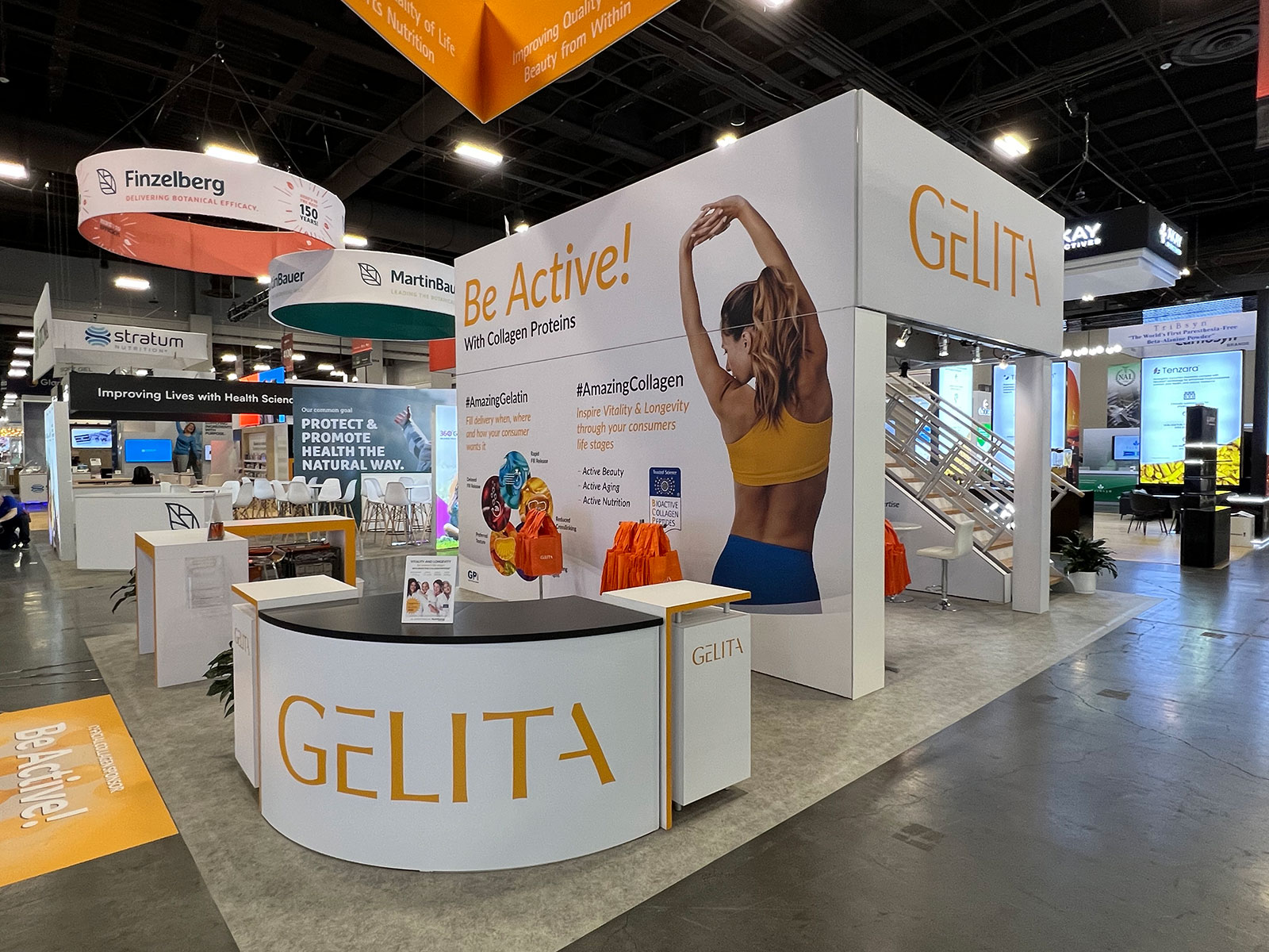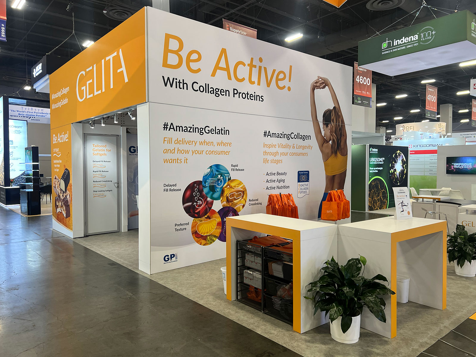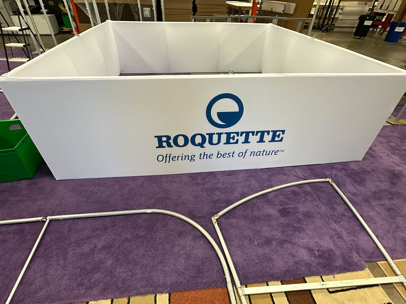 Custom Inline Exhibit with SuperNova Backlit Lightboxes, (4) Product Shelves, Storage Closet, Fabric and Direct Print Graphics, Reception Counter w/ Open Storage, and Counter w/ Locking Storage and Wireless Charging Pads Custom Inline Exhibit with SuperNova Backlit Lightboxes -- View 2 Custom Inline Exhibit with SuperNova Backlit Lightboxes -- View 3 Custom Inline Exhibit with SuperNova Backlit Lightboxes -- View 4 Custom Inline Exhibit with SuperNova Backlit Lightboxes -- View 5 Custom Inline Exhibit with SuperNova Backlit Lightboxes -- View 6