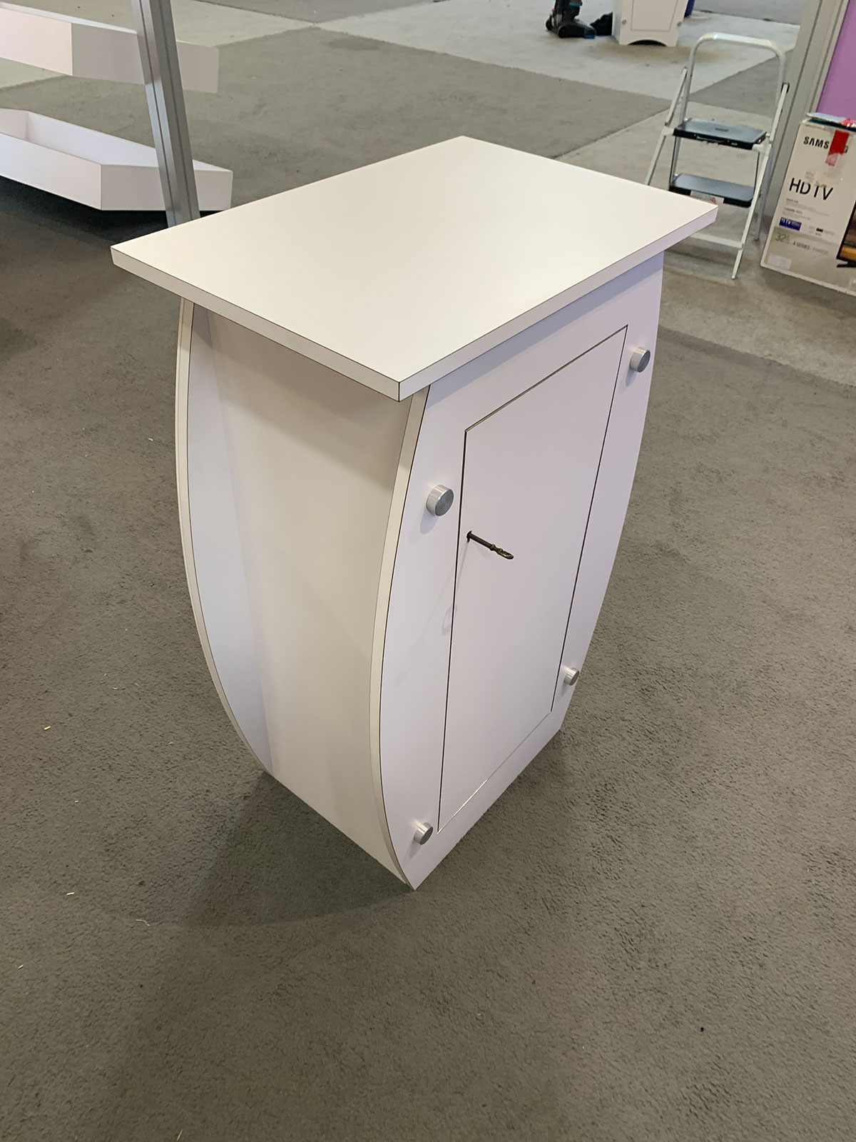 Custom Product Display Counter with Backlit Logo and LED Accent Lights, Locking Storage, and Plex Display Case Custom Product Display Counter with Backlit Logo and LED Accent Lights, Locking Storage, and Plex Display Case