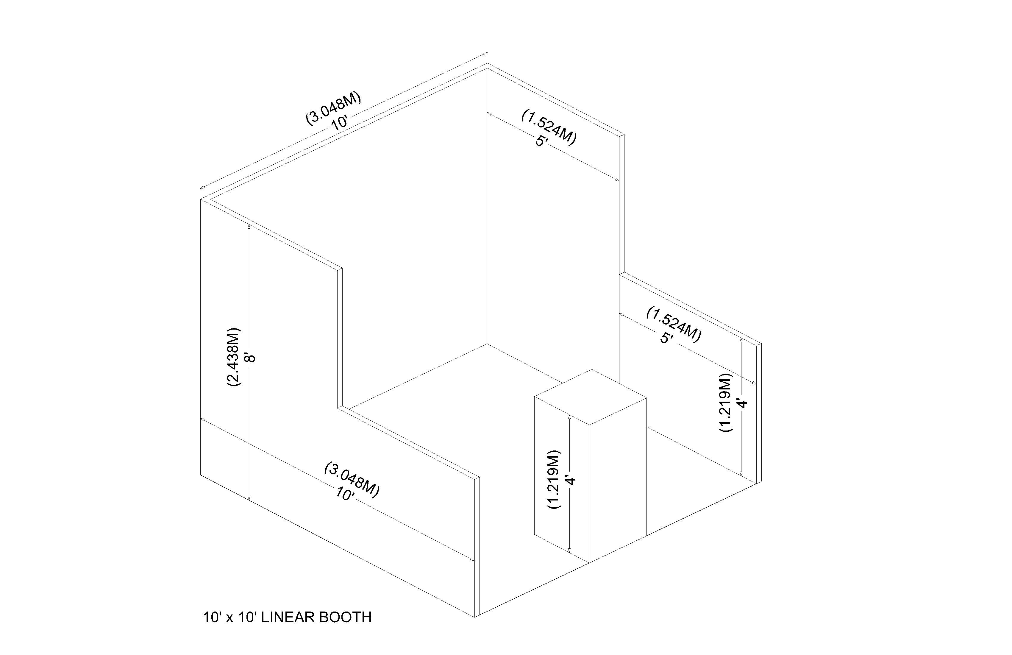 A corner booth is a linear booth exposed to the aisle on two sides. All other guidelines for linear booths apply.
